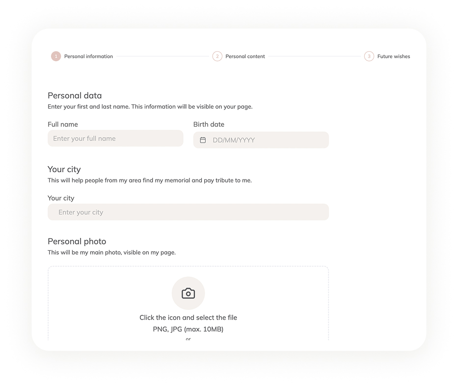 Indicate where your loved one rests: a cemetery, a memorial garden, or another special place.
