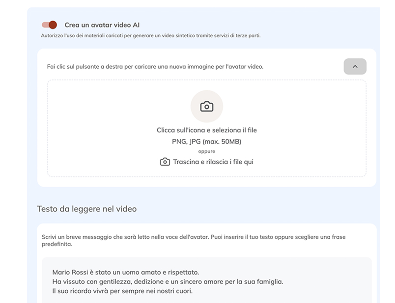 Crea un video commovente partendo da una foto e da un messaggio. L'intelligenza artificiale restituisce una presenza che emoziona e consola.
