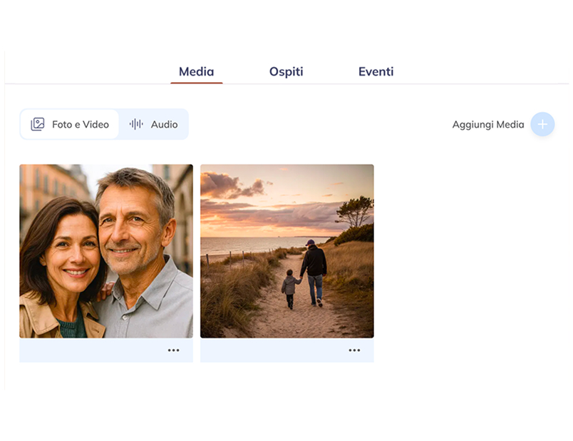 Carica foto, scrivi messaggi, invita gli ospiti a partecipare e a condividere momenti. Il memoriale diventa un luogo vivo di memoria collettiva.